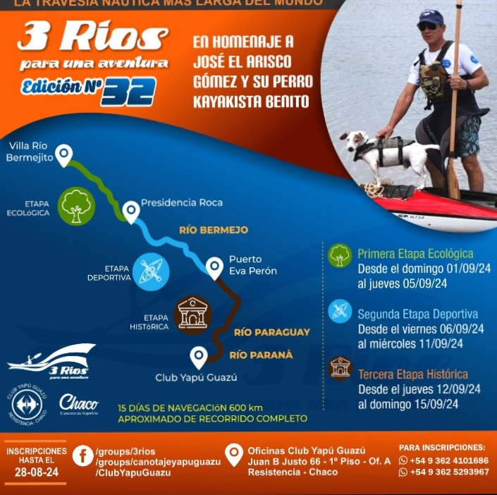 Héctor agradeció al Intendente Omar Reí por su predisposición y la atención en Bermejito. agradeció por la ayuda y la atención para con todos los participantes. En su repaso comento que algunos participantes sufrieron inconvenientes con el tema del humo debido a los incendios en los vecinos piases. 3 Rio para una aventura partió el 1 de septiembre desde Villa Rio Bermejito y culmino el domingo 15 en Yapú Guazú mas de 600 km de recorrido.