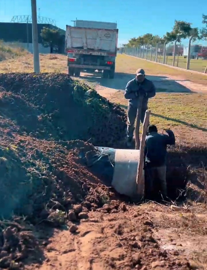 Estamos colocando tubos de desagüe en lo que será el nuevo acceso al barrio Chacra 91 de Juan José Castelli. Este paso es fundamental para luego llevar a cabo el trabajo de enripiado, una obra que realizamos en conjunto con los vecinos y vecinas del barrio .
