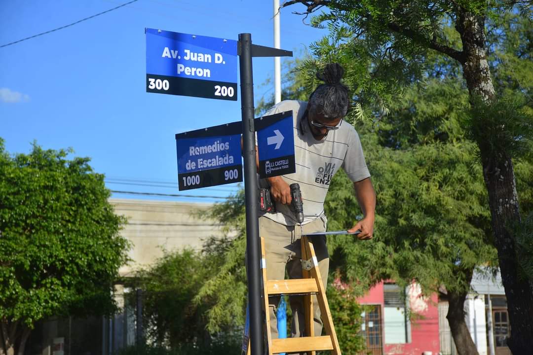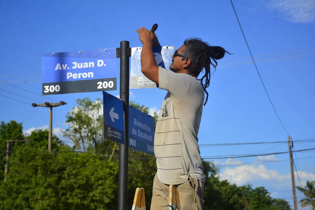La Secretaría de Obras Públicos de la municipalidad de Castelli avanza en la colocación de carteles nomencladores en la calle «Remedios de Escalada», como parte de un plan de señalización y urbanización de la ciudad.