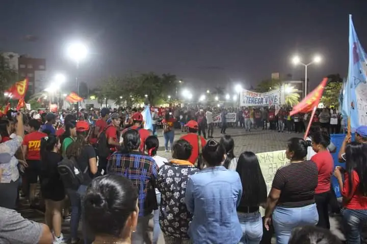 En la tarde – Noche del 24 de enero organizaciones sociales y sindicales se concentraron en la plaza SAN MARTIN de JUAN JOSE CASTELLI, luego marcharon hasta la avenida Güemes , finalizando en el lugar de partida. Entre las organizaciones presentes estuvieron SINDICATOS “UPCP – Sitech Federación” ORGANIZACIONES SOCIALES “FOL, CCC, MAR, PTP, DDHH, Nuestra América, Darío Santillán, Darío Santillán originario, Pueblos originarios, Partido Obrero, dirigente del Frente Chaqueño, FOL Genero, entre otros”