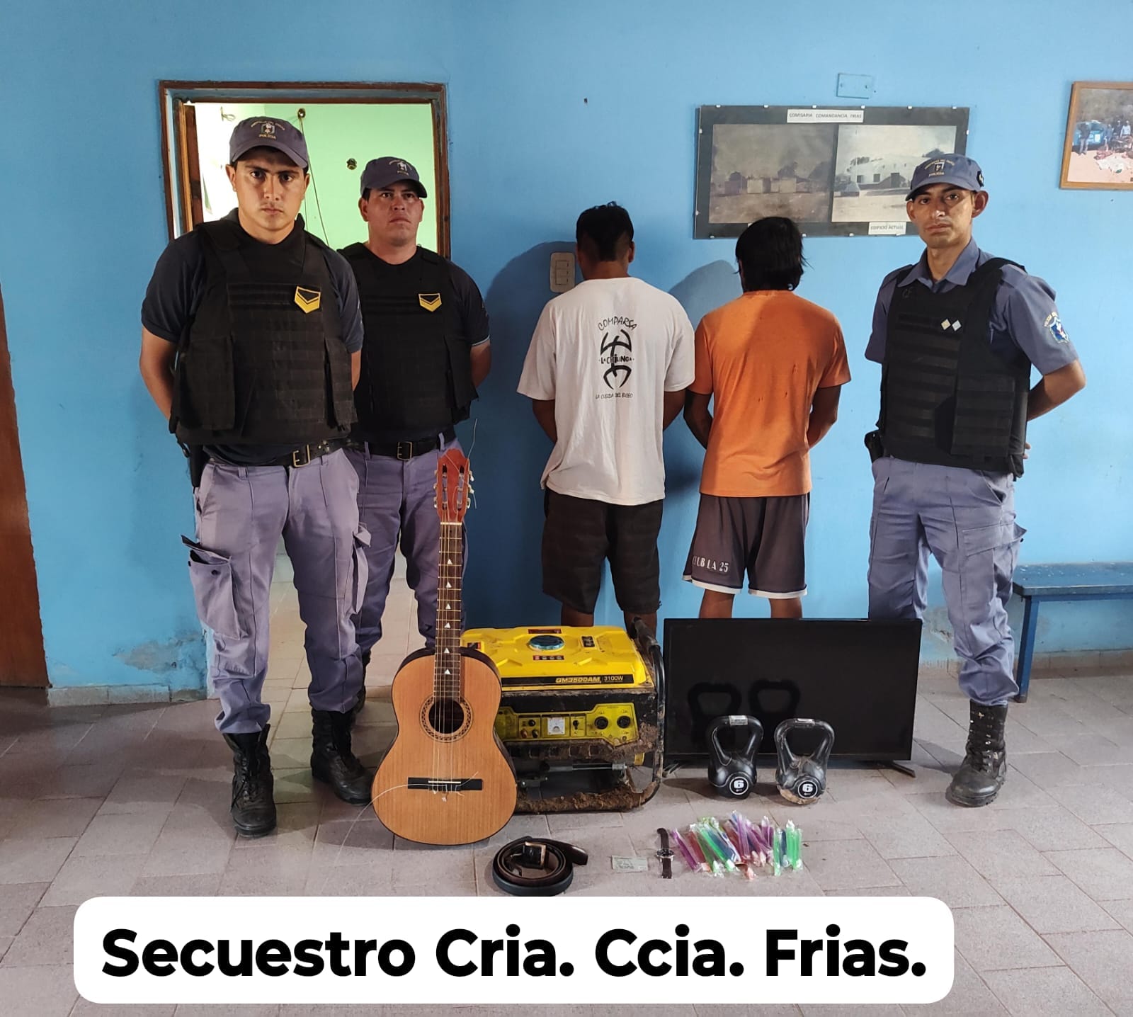 Por lo que rápidamente personal a cargo del OFICIAL AYUDANTE MIRANDA, se aboco a tareas de individualización de los sindicados, hallandolos, zona boscosa orillas Rio Bermejito, quienes se encontraba desenterrando varios elementos, quienes al percatarse de la prevención intentan darse a la fuga por el canal siendo interceptados a pocos metros, siendo mayores de edad ambos con ddo Planta Urbana- Está.