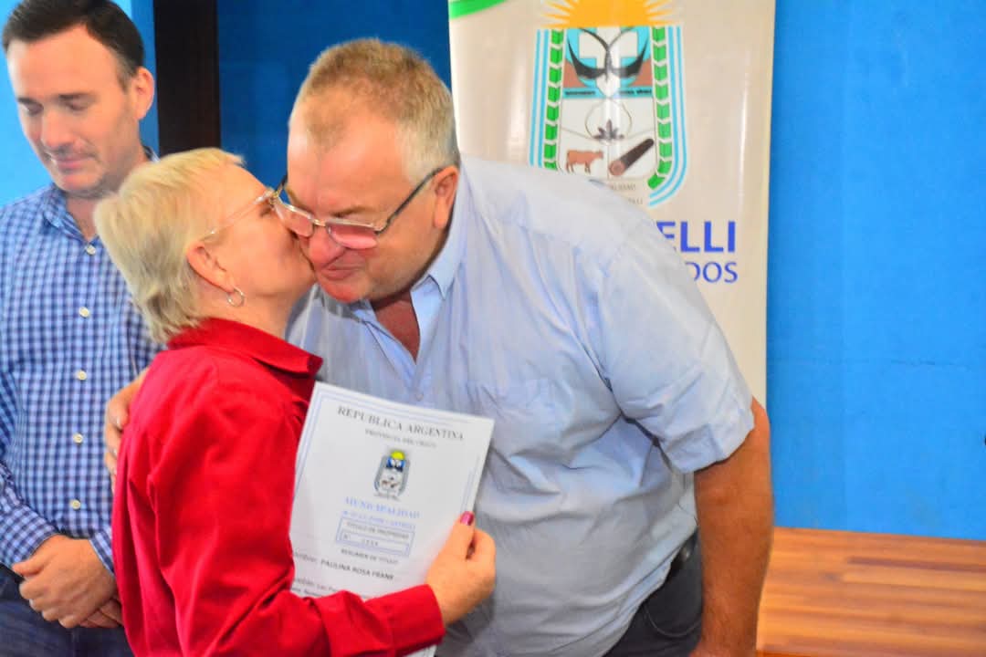 En la jornada de este viernes 11 de abril, el intendente Pío Sander, junto a la presidenta del Concejo Deliberante, Soledad Rach, y el secretario de Gobierno, Ismael Pablo Barnes, hicieron entrega de títulos de propiedad a vecinos que, durante mucho tiempo, estuvieron pagando por sus terrenos.