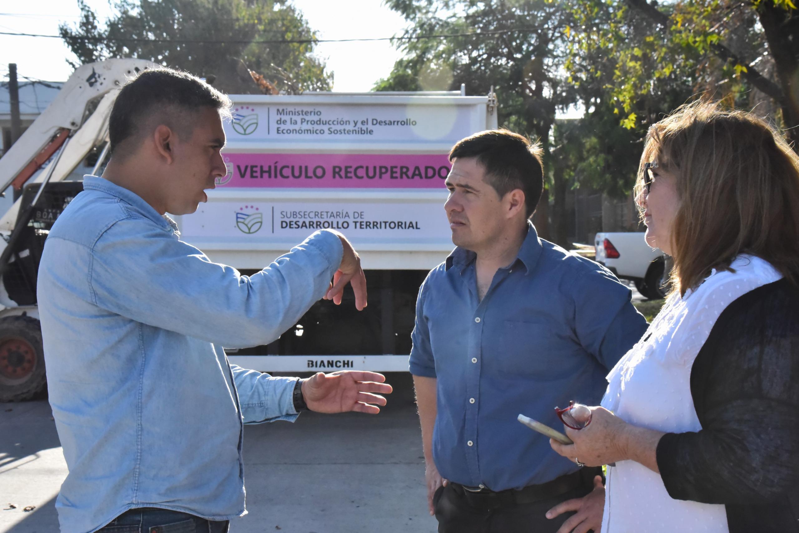 El ministro de la Producción y Desarrollo Económico Sostenible Hernán Halavacs entregó, este jueves, un camión recuperado al Programa Provincial Ecoequipo de la cartera que conduce, que realiza trabajos de limpieza y desmalezamiento. El vehículo, que se encontraba en potestad de la Fundación Saúl Acuña, se suma a los más de 60 automóviles “recuperados de la corrupción”.