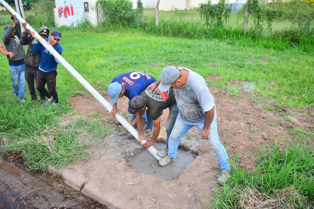 Asimismo, en Avenida Alem, sector este (salida a Ruta 95), se avanzó con la instalación de nuevas columnas de iluminación, atendiendo el pedido de vecinos y transeúntes que circulan por la zona.