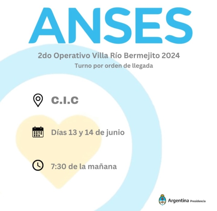 El jueves 13 y viernes 14 de junio se realizará un nuevo operativo de ANSES en la localidad gracias al esfuerzo y compromiso de Capi Rodriguez jefe Regional de ANSES.