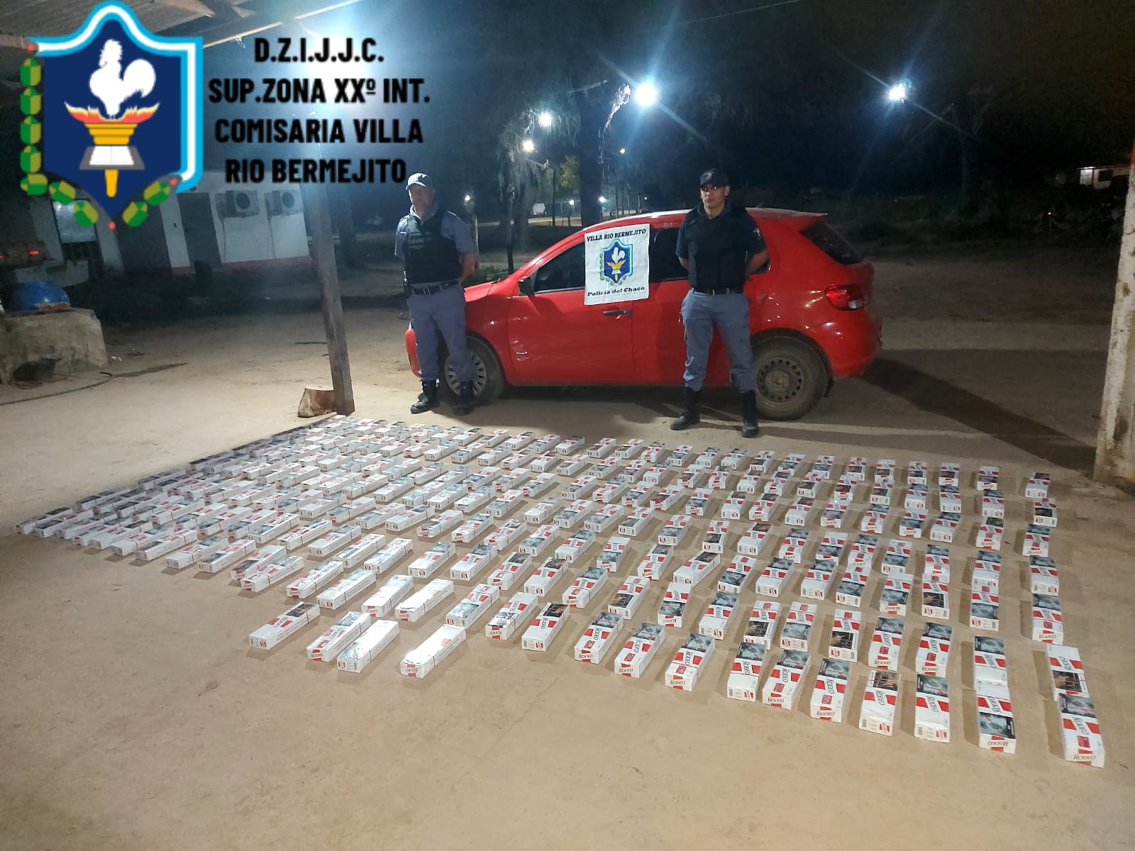 Este viernes 19 de julio a las 18:30, se toma conocimiento que en cercanías a la localidad personal Policial de Bermejito, que realizaba recorridas en prevención de ilícitos y contravenciones por distintos sectores esta localidad, tomó conocimiento por interpósita persona acerca arribo a este pueblo vehículo Volkswagen Gol color rojo, en que su conductor masculino estaría transportando cigarrillos RODEO sin aval aduanero, logrando dar con rodado lugar indicado arriba, mismo era guiado por mencionado C. L. , hallando interior vehículo sector asientos traseros cuatro bultos nylon bolsa tipo consorcio, conteniendo interior secuestro enunciado arriba. Un (1) automóvil marca Volkswagen, Modelo Gol Trend, tipo Sedan 5 puertas, color rojo. Doscientos (200) cartones de cigarrillo marca RODEO, origen extranjero (PARAGUAYO) de diez (10) paquetes, por veinte (20) unidades (cigarrillos) cada uno, sin aval aduanero correspondiente.-