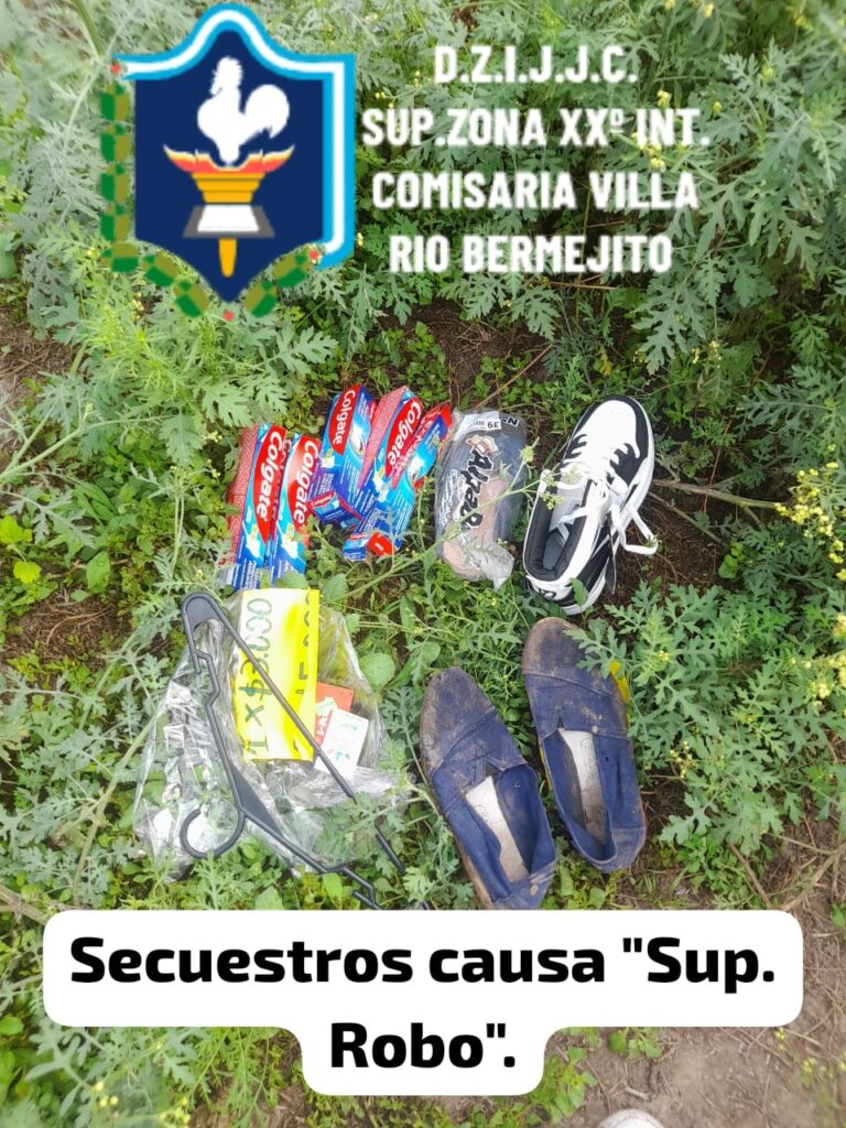 Este viernes 25 de julio se produjo un nuevo robo en Bermejito.Personal policial trabajo rápido para dar con los responsables del hecho, guardia y servicio externo, en forma conjunta tras realizar tareas investigativas zona barrio Sueños Compartidos y Quinta Rosa Nus.