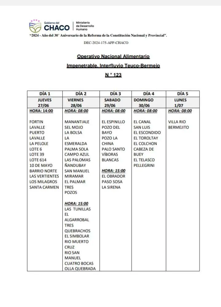 El próximo 27 de junio dará inicio el Operativo Nacional Alimentario N° 123 en la región del Impenetrable, Interfluvio Teuco Bermejito. Esta iniciativa, gestionada por el Ministerio de Desarrollo Humano de la Provincia del Chaco, marcará el comienzo de una serie de nueve entregas anuales destinadas a asistir a comunidades vulnerables de la zona.