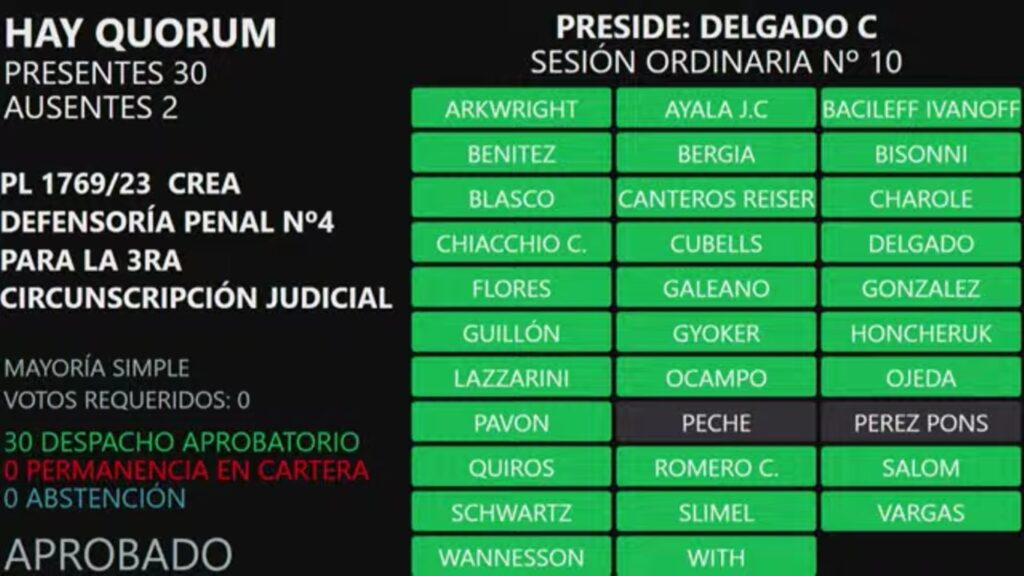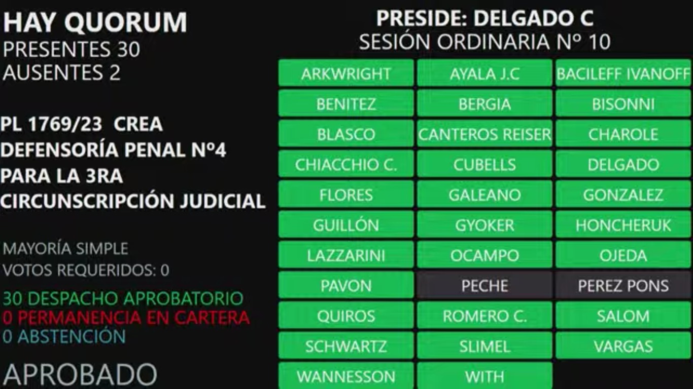 Seguidamente se sancionó la norma que crea la Defensoría Oficial Penal N° 4 en la Tercera Circunscripción Judicial, con asiento en la ciudad de Villa Ángela. Esta fue una propuesta del Superior Tribunal de Justicia, atento a diversos motivos, entre los cuales se destaca la reciente creación de una Fiscalía en dicha circunscripción, que amerita sostener el principio de la paridad de armas entre los ministerios públicos fiscal y de la defensa.