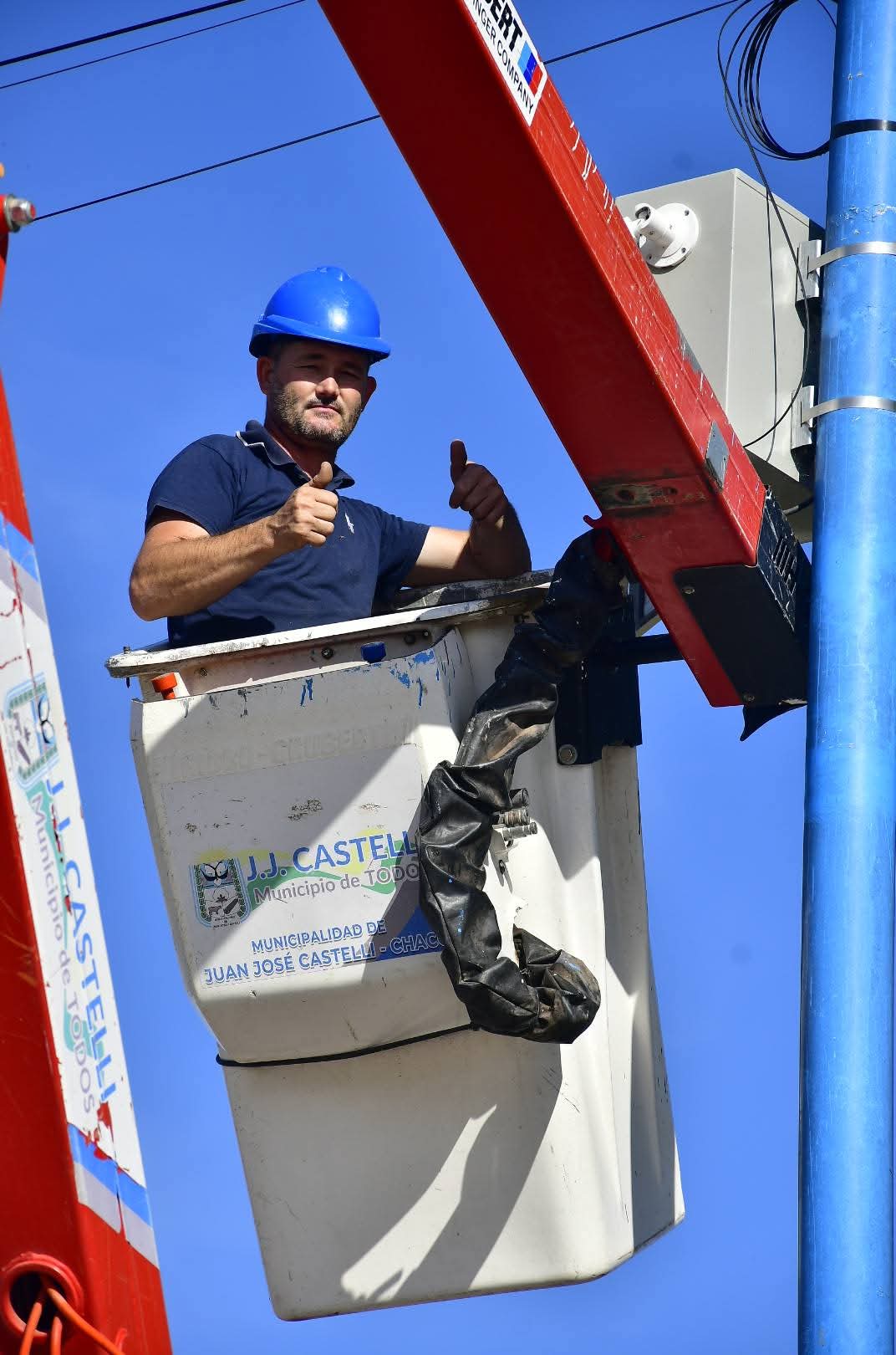 La Municipalidad de Juan José Castelli, a través de la Coordinación de la Sala de Monitoreo y la secretaria de Obras Públicas, llevó adelante la reparación de cámaras de seguridad que resultaron dañadas por la caída de rayos durante las lluvias registradas el fin de semana pasado.