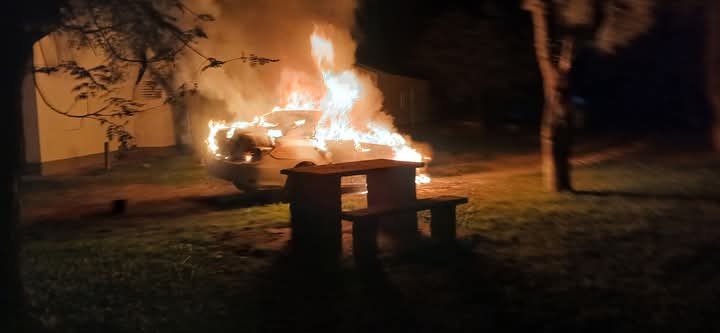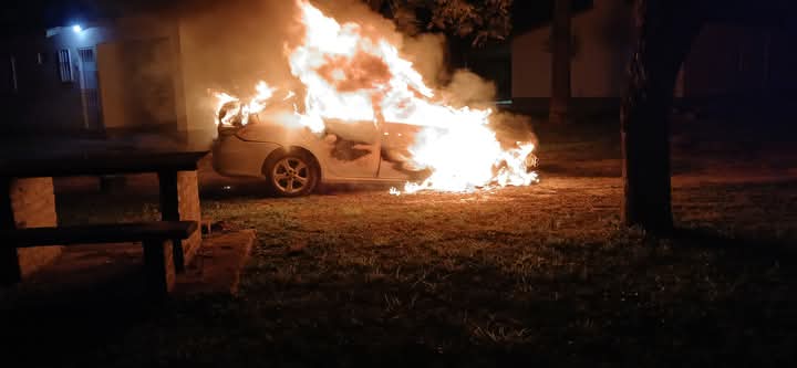Rapido accionar de los bomberos boluntario de Villa Rio Bermejito este dia viernes Siendo las 4.55 am se da aviso al tel del personal de guardia por un incendio vehicular en el predio de las casillas del banco del chaco ubicado en avenida malvinas argentinas .personal de bomberos se traslada al lugar a las 5.10 am en el movil 02 al llegar se constata de un incendio vehicular un toyota corolla completamente consumido por las llamas.