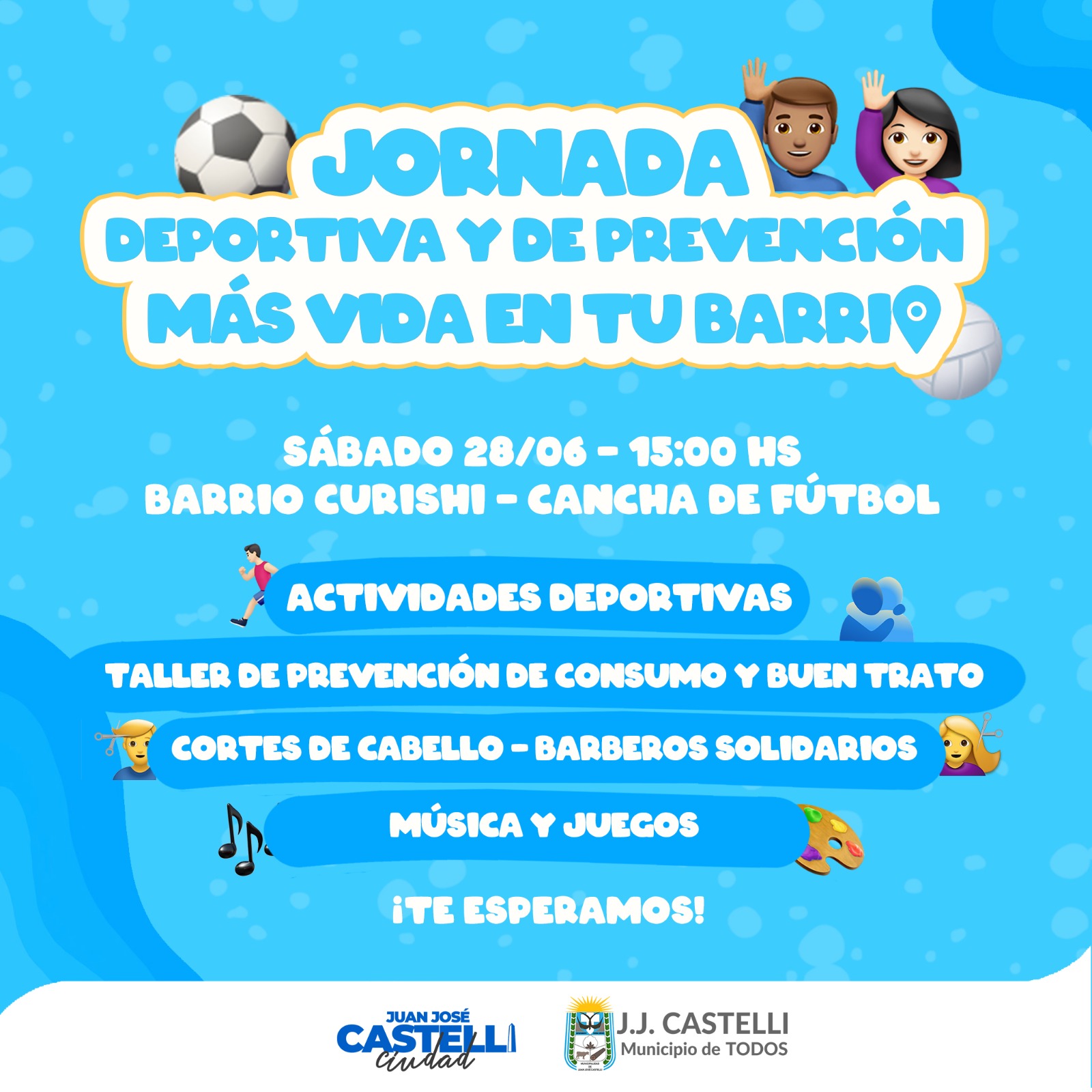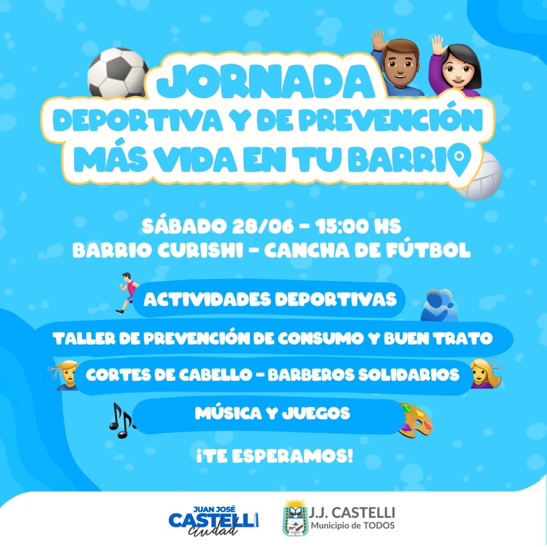 Este sábado 28/06 a las 15:00 hs te esperamos en la cancha de fútbol del Barrio Curishi para compartir una increíble Jornada Deportiva y de Prevención.