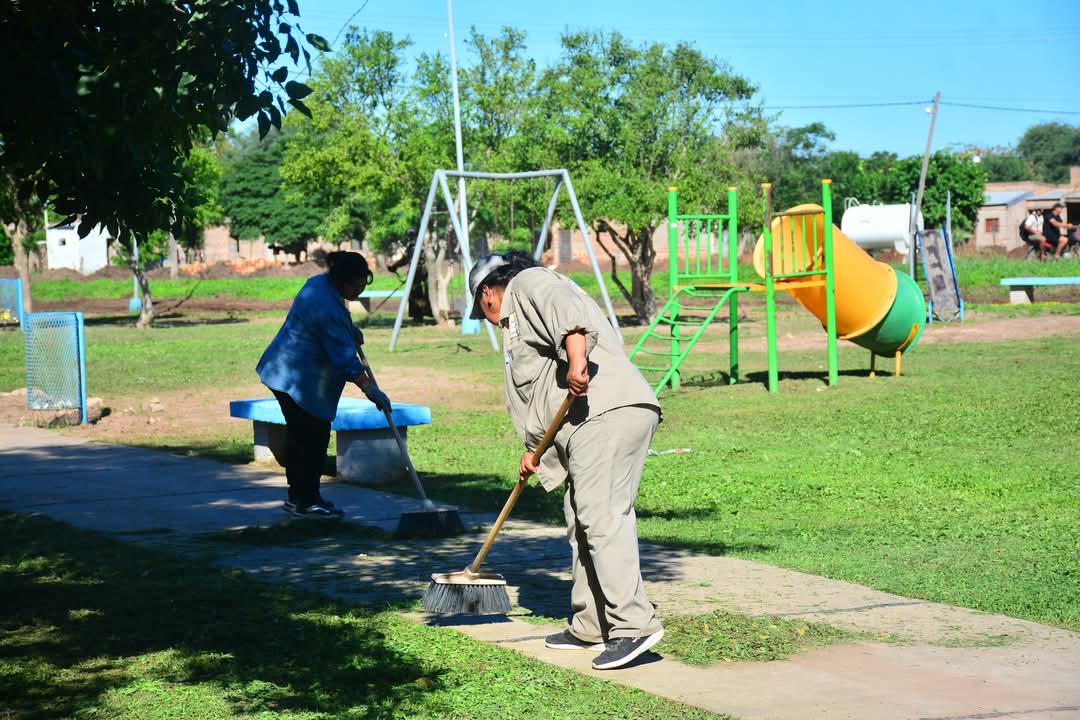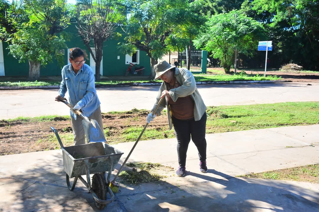 Durante la visita, supervisaron las tareas de recolección de ramas, arreglo de calles, desmalezado e instalación de nueva iluminación, que se están llevando a cabo en distintos puntos de la localidad.